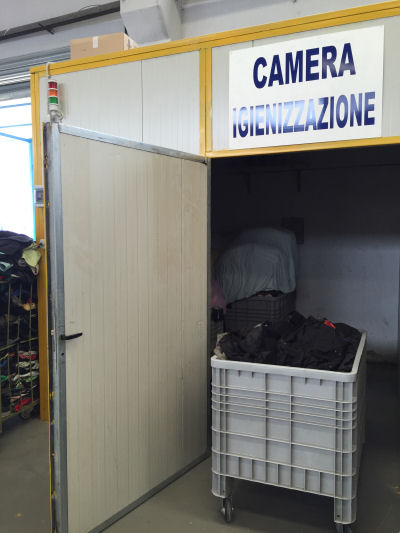 Gli indumenti usati acquisiti che giungono presso la nostra azienda subiscono una preselezione che li libera dagli invoolucri di plastica e/o carta in cui erano contenuti,inoltre in questa fase viene eliminata anche la parte di rifiuto non rientrante nella categoria tessile. Dopo questa fase di preselezione, Iil materiale selezionato e viene sottoposto ad un'attenta attività di igienizzazione, tramite un impianto ad ozono a chiusura ermetica che consente la sanificazione dei tessuti.